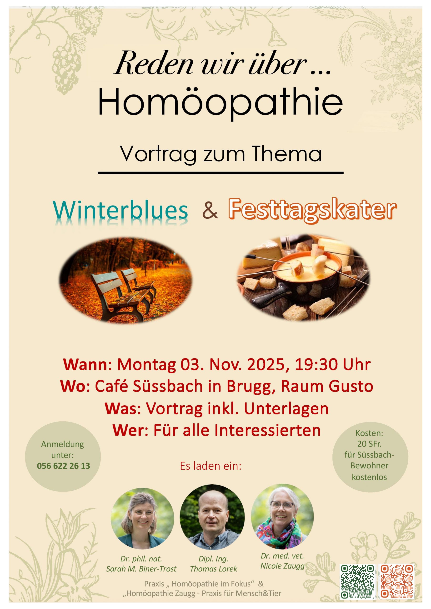 Wir laden herzlich ein zum Vortrag über Winterblues und Festtagskater am 03. November 2025 in Brugg 🤗